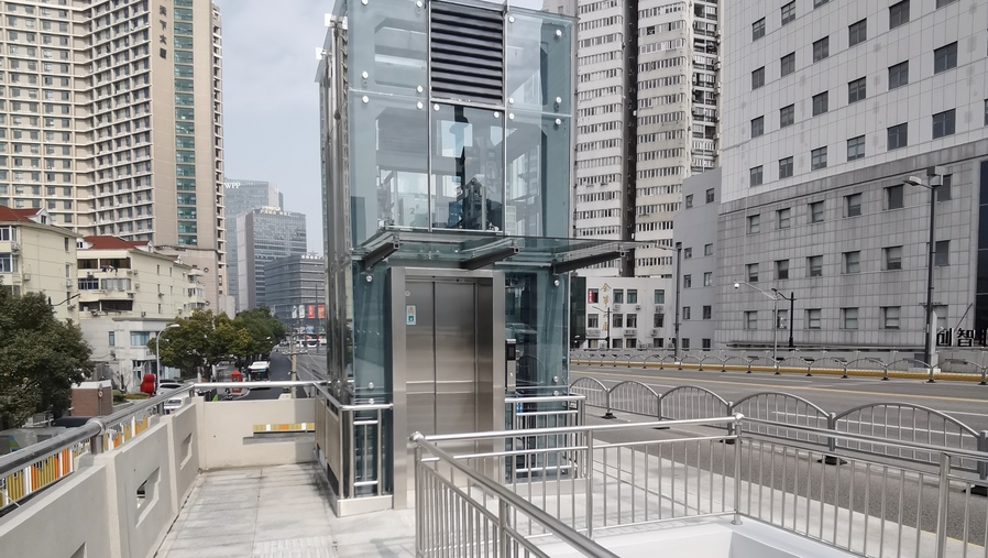 据了解,此次选用的电梯遵循《无障碍设计规范》GB50763标准,采用1.1米×1.4米无障碍电梯,载重量630公斤,核载人数8人;电梯内同步增设了新风系统、视频监控、盲文按钮、电子音箱等设施。同时,原人行平台也进行了改造加固,人行梯道进行适老化改造,增设栏杆扶手、电梯位置指示标志等,精心打造了适老化、无障碍的友好交通出行环境。