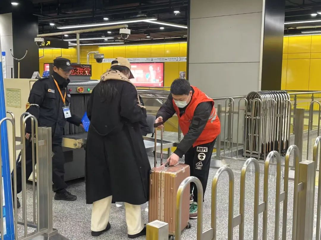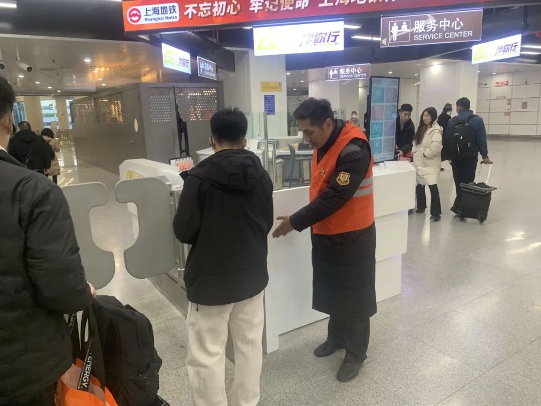 近400余名志愿者在地铁虹桥火车站站、上海火车站站、上海松江站站、人民广场站、莘庄站等重点保驾车站,为乘客提供路线规划、进站引导、爱心帮扶等服务,在延时运营期间传递爱心与温暖,帮助车站有效缓解了返程高峰客流压力。