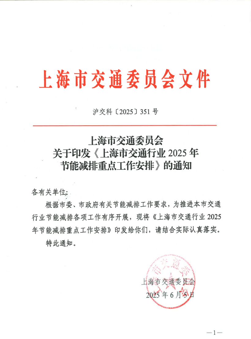 上海市交通委员会关于印发《上海市交通行业2025年节能减排重点工作安排》的通知