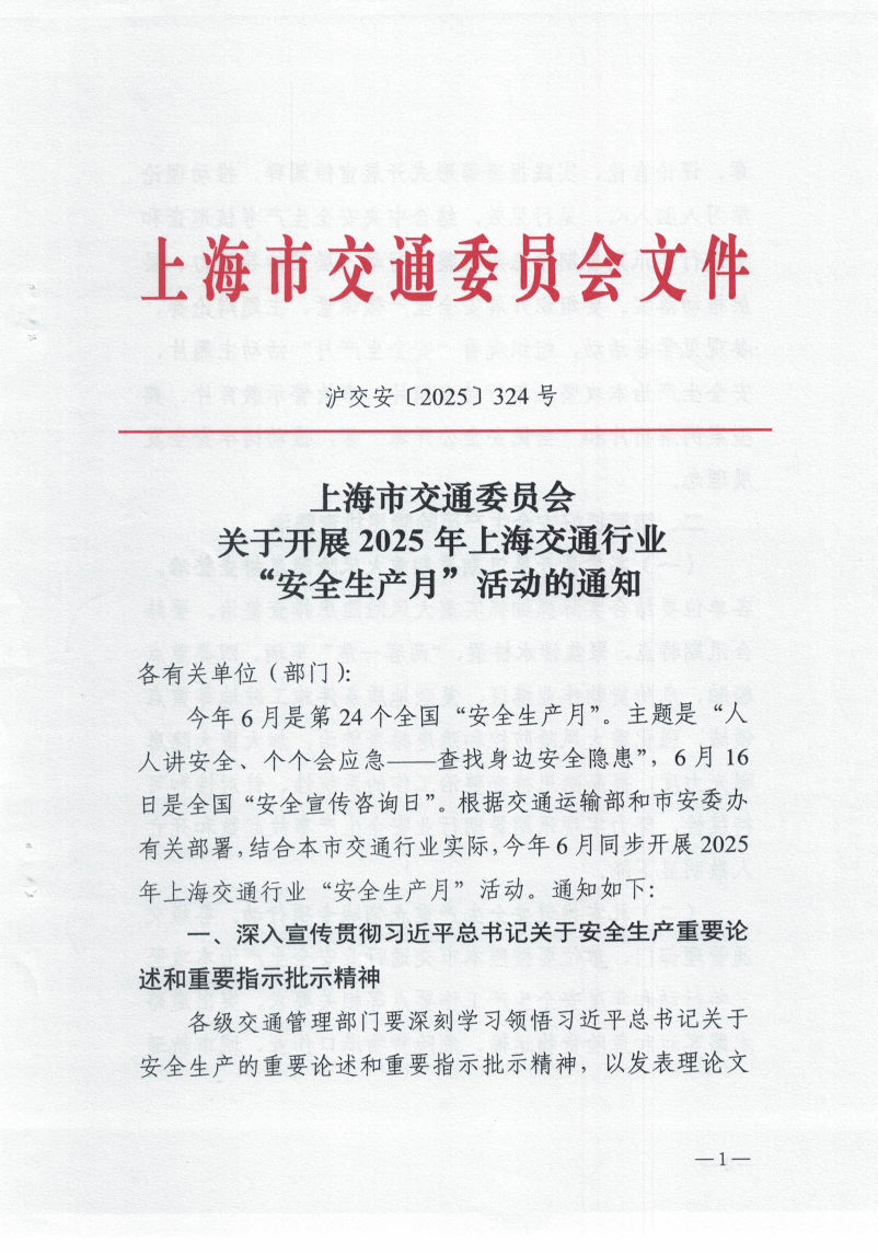 上海市交通委员会关于开展2025年上海交通行业“安全生产月”活动的通知